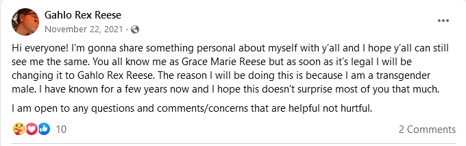 As reported by Andy Ngo, a group of North Texas Antifa shut down a speaker at an anti-trans meeting at the University of North Texas. Denton, a suburb of Dallas Goes by Gahlo Rex Reese as a transexual Tiktok (now deleted) - https://www.tiktok.com/@gahlosalley Roommates tiktok, which features her a bunch https://www.tiktok.com/@xxashjaeangxx https://twitter.com/MrAndyNgo/status/1499250115994959872 https://kiwifarms.net/threads/tranny-sideshows-on-social-media.33028/page-3830#post-11354350 https://kiwifarms.net/threads/tranny-sideshows-on-social-media.33028/page-3828#post-11352249