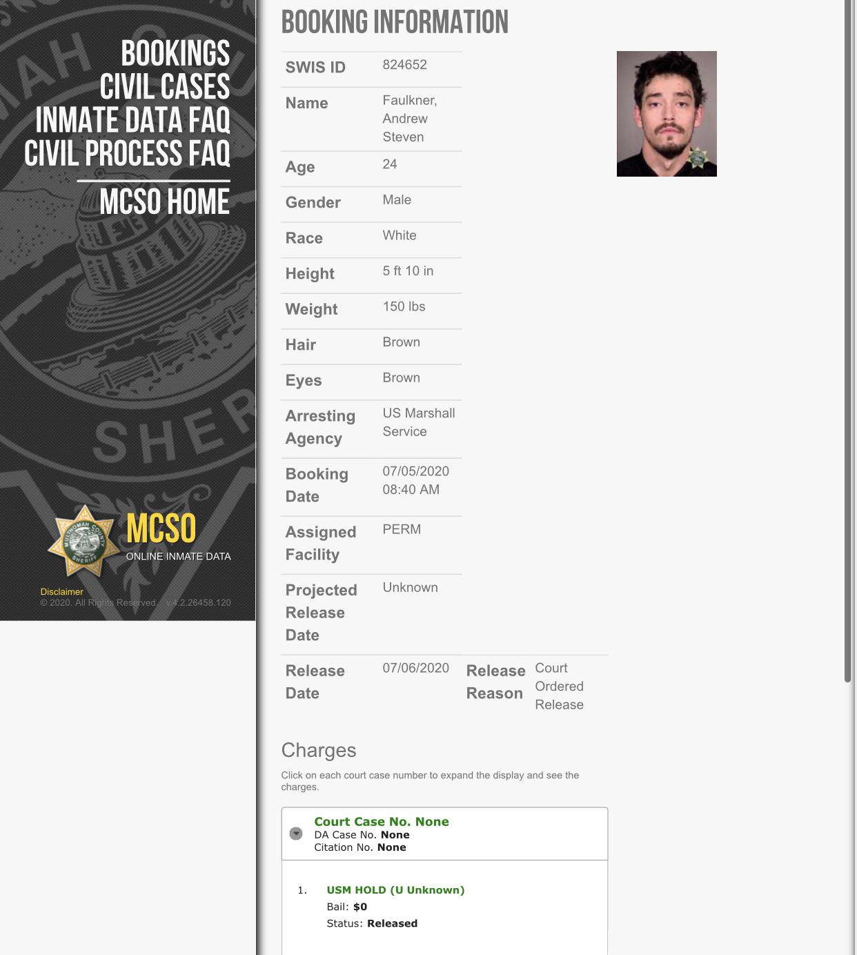 https://twitter.com/MrAndyNgo/status/1280462647419232257 Andrew Steven Faulkner, 24, was arrested & charged w/assaulting a federal officer at the Portland #antifa riot. He is also under investigation for carrying potential pipe bomb components. He's been released on pretrial. http://archive.vn/2IgmB#selection-133.0-133.8 #PortlandRiots #PortlandMugshots https://www.courtlistener.com/docket/17325881/united-states-v-faulkner/ Participated in the pearl district antifa riot on Friday, March 12, 2021 https://www.portlandoregon.gov/police/news/read.cfm?id=301580