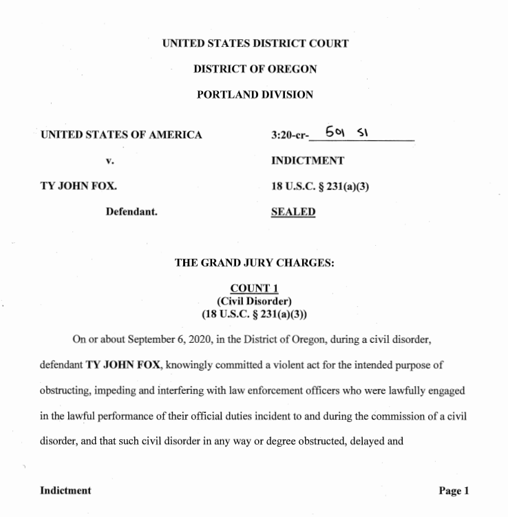 https://www.portlandoregon.gov/police/news/read.cfm?id=261171 https://thepostmillennial.com/army-to-antifa-former-private-charged https://twitter.com/_xoxoxoxoxxoxo_/status/1321173712943648769 https://twitter.com/_xoxoxoxoxxoxo_/status/1321174301370888193 RIOT (C Felony) ARSON I (A Felony) ESCAPE III (A Misdemeanor)