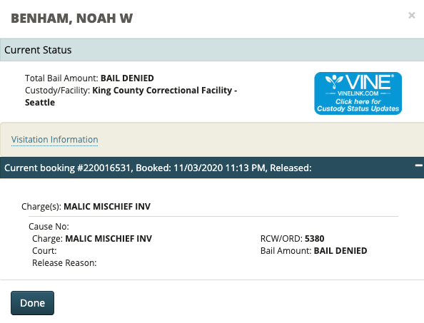 https://twitter.com/SeattlePD/status/1323872521607815169 Charge - Malic Mischief