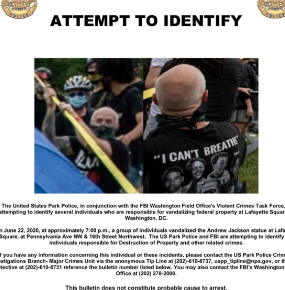 https://www.justice.gov/usao-dc/pr/four-men-charged-federal-court-attempting-tear-down-statue-andrew-jackson-lafayette https://mobile.twitter.com/realDonaldTrump/status/1276999573685309441 https://www.courtlistener.com/recap/gov.uscourts.dcd.219436/gov.uscourts.dcd.219436.1.1.pdf https://www.courtlistener.com/docket/17341623/united-states-v-lee-michael-cantrell/