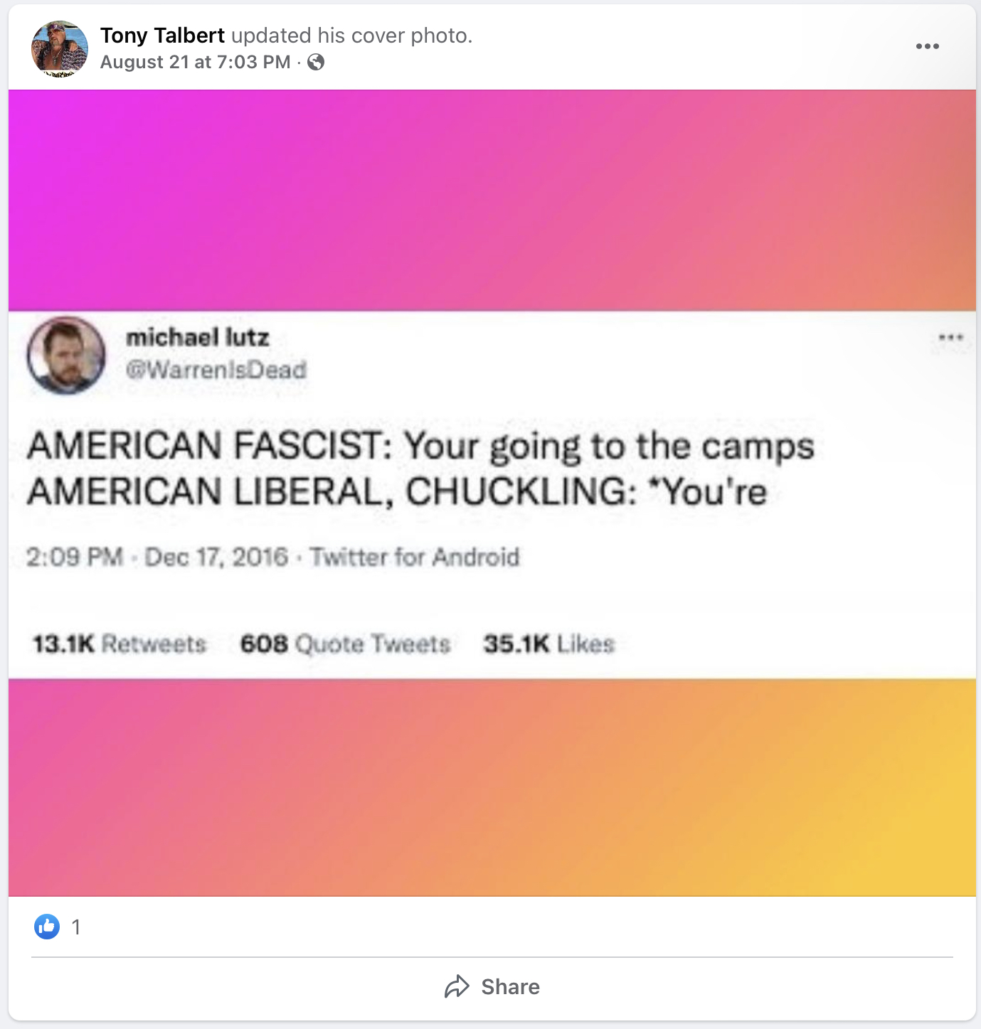 Left wing thug in the DMV (D.C., Maryland, Virginia) area. Most likely attended and caused violence at the 2017 Charlottesville rally, as well as the D.C. Trump protests in November 2020-January 2021. https://www.linkedin.com/in/anthonytalbert
