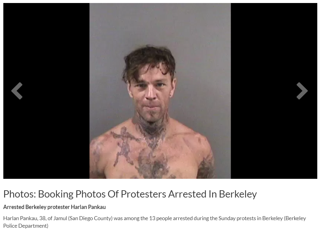 https://sanfrancisco.cbslocal.com/photo-galleries/2017/08/28/photos-booking-photos-of-protesters-arrested-in-berkeley/ This idiot was on Judge Judy in 2014 for stealing water and damaging a home he rented.