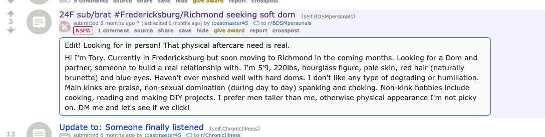 REDDIT : https://old.reddit.com/user/toastmaster45/submitted/