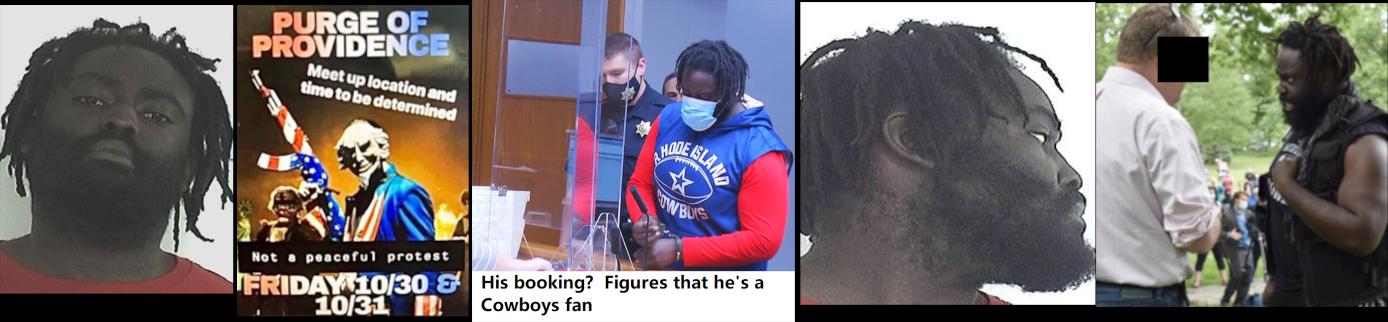 https://turnto10.com/news/local/police-report-details-2-arrests-at-back-the-blue-rally While Rodriguez was being placed into custody, Jonas Pierre was seen going toward the arrest. Police pushed him to the ground and arrested him. He was charged with disorderly conduct resisting arrest, simple assault, obstructing officer in execution of duty, and weapons other than firearms prohibited. Full name: Jonas Son Pierre (DOB: 04/14/92). His age as given in the original post appears to be incorrect, he was 28 at the time of his arrests in 2020. He was arrested a second time in 2020 for threatening a radio host. Pierre was charged with disorderly conduct and possession of a firearm after being convicted of a violent crime. He was the organizer of an aborted (no pun) Purge of Providence riot which was billed as "Not a peaceful protest". The Purge reference appears to refer to the Purge movie franchise, films about an annual violent free-for-all when all laws are suspended. The fliers apparently scared the s**t out of many of the good residents of Providence. It's a good thing the police stopped the planned riot before it was held. He lives with his mama and his older bro in Plainville, Massachusetts, not far from Providence. https://archive.ph/zhwJX