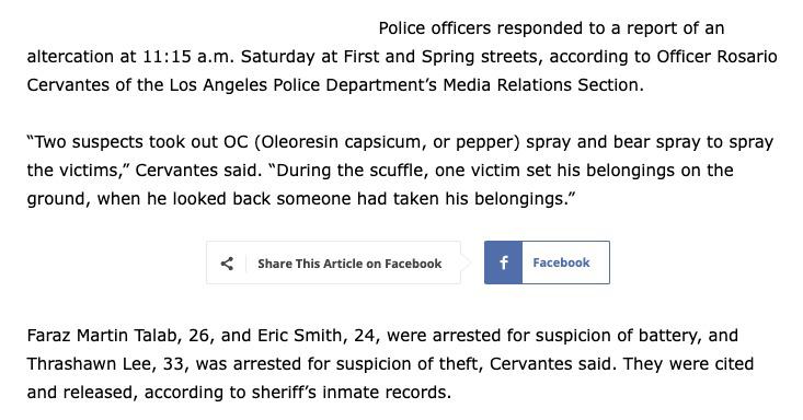 https://twitter.com/AntifaWatch2/status/1467955294139518992 https://s3.documentcloud.org/documents/21141938/pb-criminal-complaint.pdf https://www.sandiegouniontribune.com/news/public-safety/story/2021-12-04/sdpd-arrests-anti-fascists-patriot-march Arrested as a part of an alleged criminal conspiracy to riot and assault people during a January 9th 2021 Patriot March in San Diego Faraz Martin Talab - previously arrested for assault at BLM/Antifa riot for Breonna Taylor
