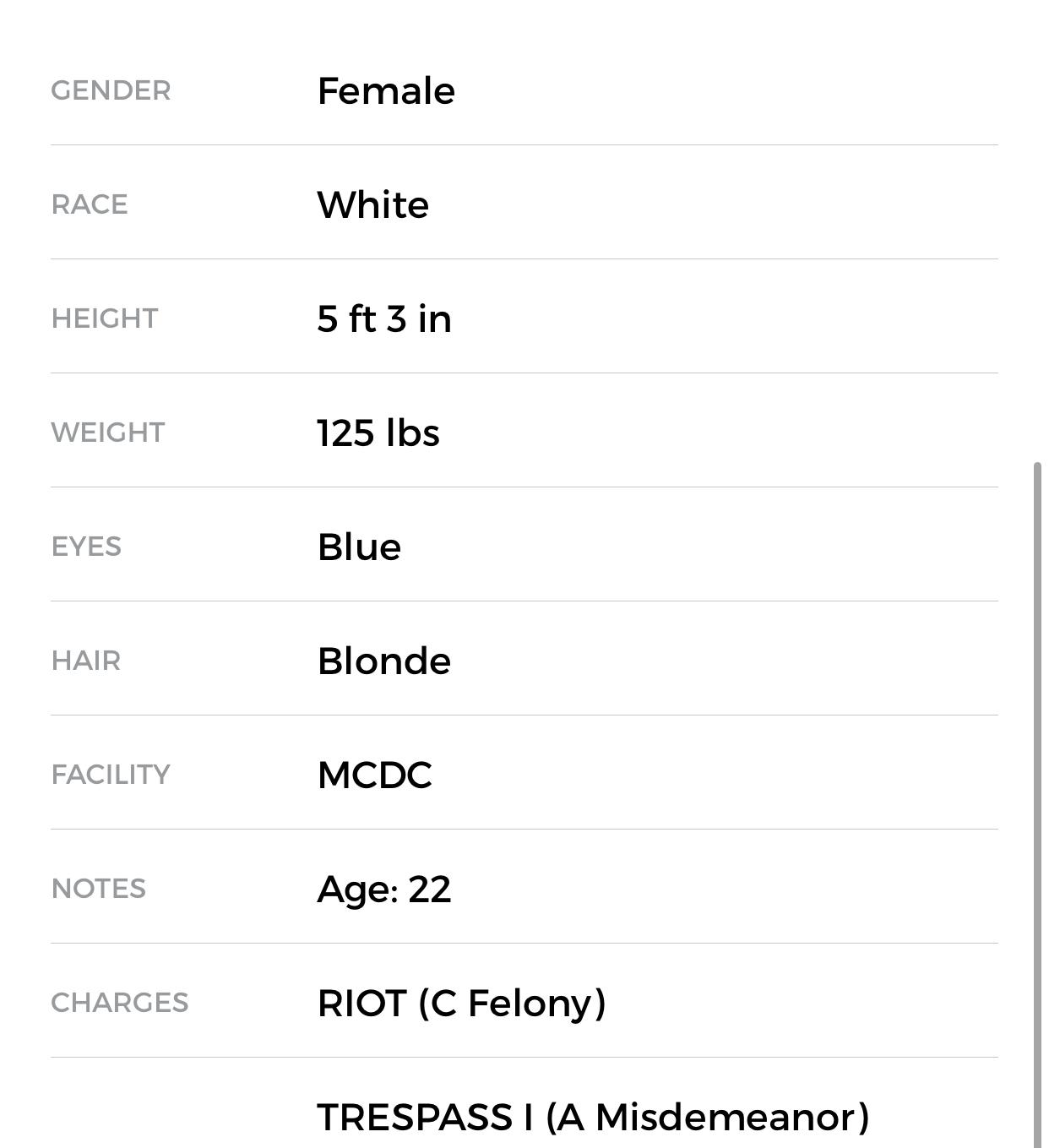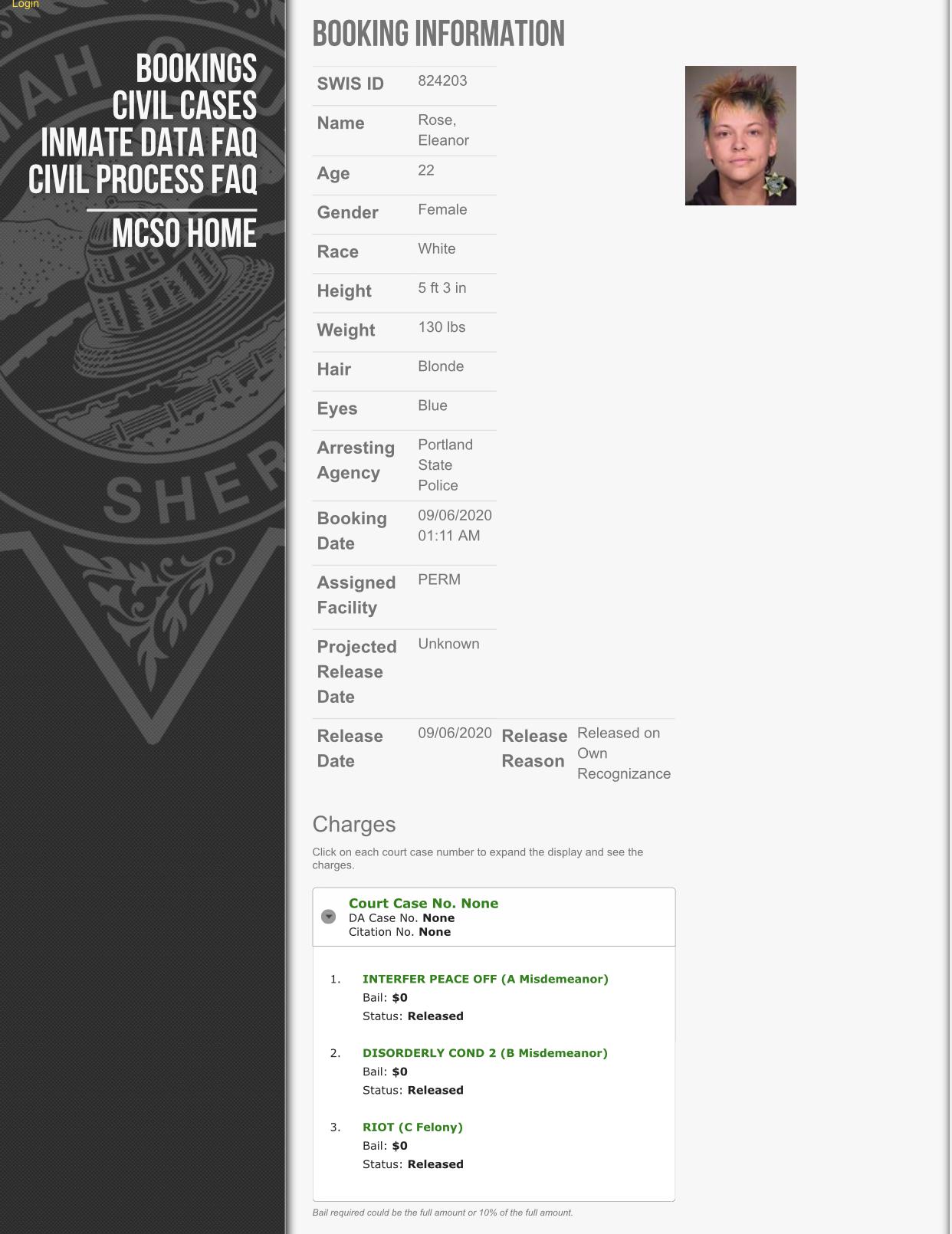 https://www.portlandoregon.gov/police/news/read.cfm?id=261171 INTERFER PEACE OFF (A Misdemeanor) DISORDERLY COND 2 (B Misdemeanor) RIOT (C Felony)