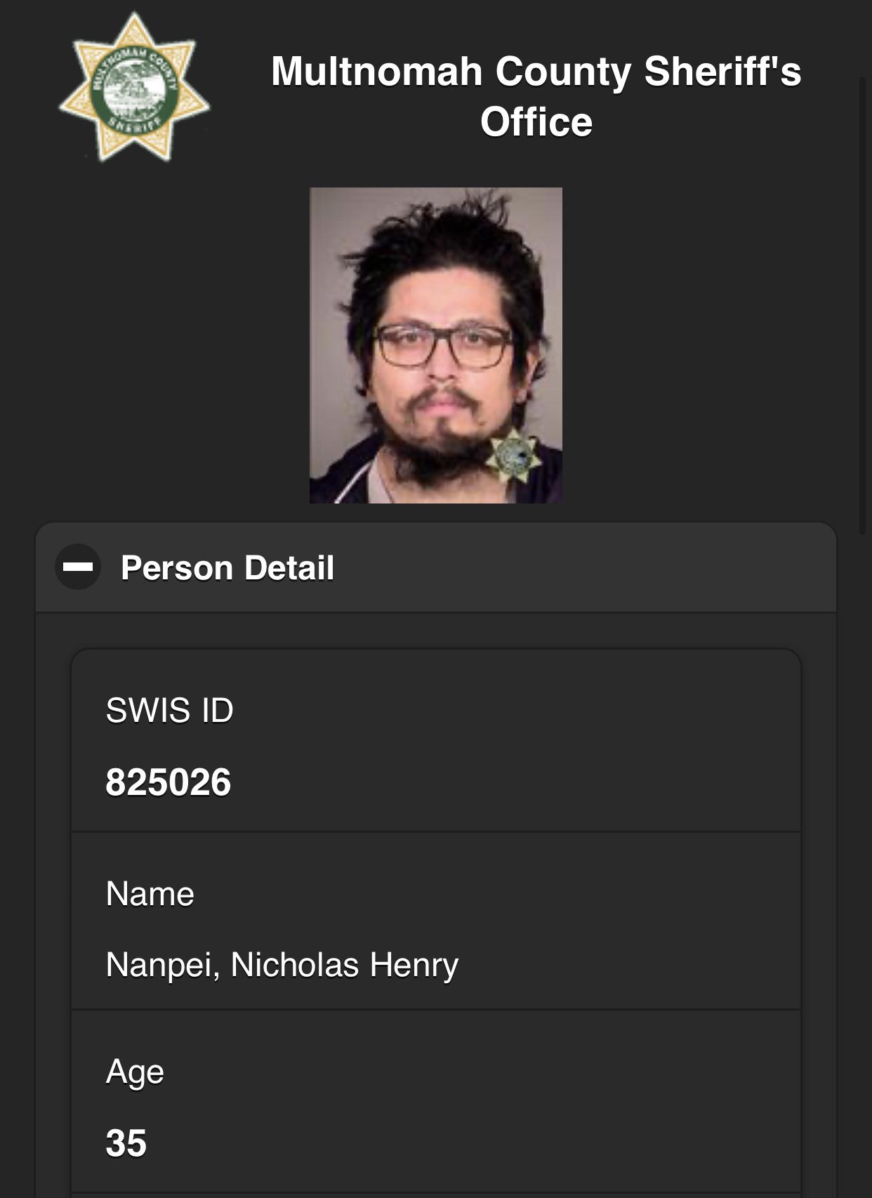 https://www.portlandoregon.gov/police/news/read.cfm?id=261079 https://twitter.com/MrAndyNgo/status/1292096956743823360 Nicholas Henry Nanpei, 35, is charged with felony assault of an officer & more. He was arrested at a violent #antifa rally in SE Portland. His social media shows he supports antifa, including violent extremist group Youth Liberation Front. #PortlandRiots http://archive.vn/GDpGO#selection-133.0-133.22