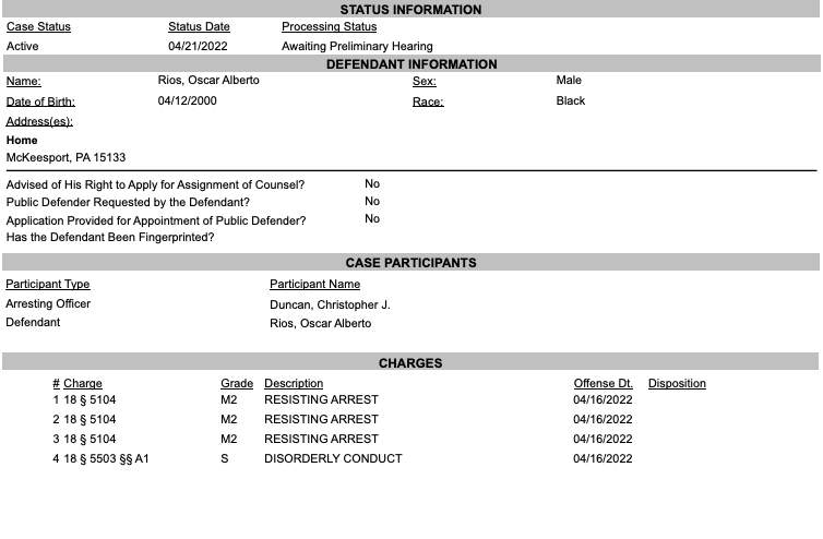 Oscar Alberto Rios is a transexual BLM/Antifa ''activist'' in Pittsburgh Pennsylvania who goes by "Vuestra Mahogany Merced" He was punched in the face after interfering and assaulting police officer in Wilkinsburg on the 16 of April. Arrested with Victoyia Townes (https://antifawatch.net/ViewReport/8536316e) Oscar was charged with resisting 3x and disorderly conduct.