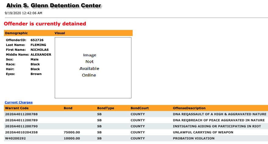 Nicholas Fleming, 24 Fleming faces charges of assault and battery of a high and aggravated nature, breach of peace aggravated in nature, participating in a riot, unlawful carry of a weapon and probation violation. For attack and stomping on a man during May 30th riots https://www.wistv.com/2020/09/18/man-accused-stomping-bystander-columbia-protest-arrested-latest-round-charges/