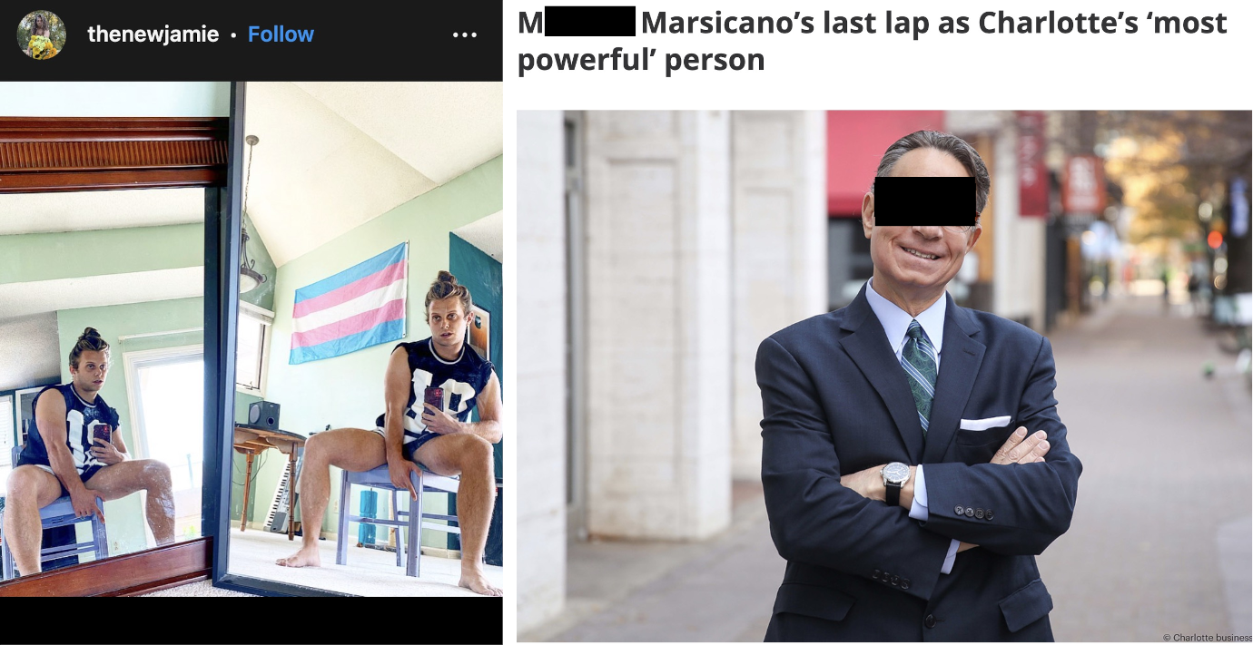 James Lee Marsicano (DOB: 03/21/93) was arrested at a 2016 protest in Charlotte and charged with impeding traffic, resisting a public officer and disorderly conduct. He was arrested again at a Charlotte George Floyd riot in 2020 for assaulting a police officer. He was charged with assaulting a public official, public disturbance, resisting a public officer https://web.archive.org/web/20210801231832/https:/charlottenc.gov/newsroom/releases/Pages/2020-CLTprotest.aspx https://archive.ph/GEfF5, https://archive.ph/G3G4Y It's a tranny activist who identifies as a female although it isn't trying very hard to convince anyone. Marsicano traveled to Cop City in Atlanta in March 2023 and participated in a riot where Antifa shot explosives at cops and burned construction equipment. It was arrested as a domestic terrorism suspect. Marsicano is studying for a law degree at UNC and was representing the left-wing National Lawyers Guild at the riot. https://archive.is/aiXCC https://archive.ph/PhS9w https://archive.is/aiXCC https://archive.is/KxQvl It comes from a very wealthy family and its father was described as one of the most powerful men in Charlotte. Daddy ran the Foundation for the Carolinas which is some sort of charity. https://archive.ph/CUbyh https://en.wikipedia.org/wiki/Michael_Marsicano https://justicereport.news/articles/2023/03/11/transsexual-daughter-of-millionaire-executive-and-millionaire-son-of-italian-designer-arrested-for-domestic-terrorism-during-antifa-cop-city-riot/