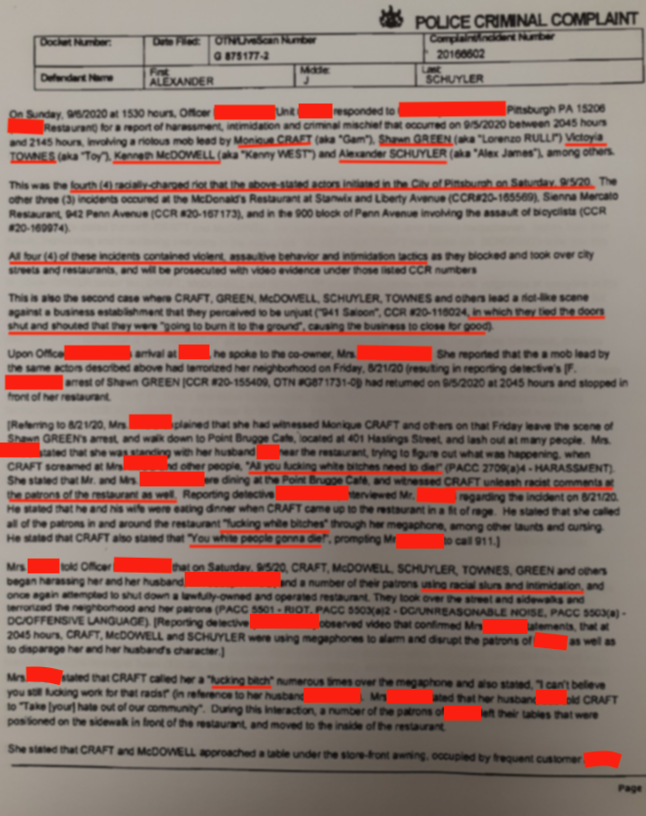 https://ujsportal.pacourts.us/DocketSheets/MDJReport.ashx?docketNumber=MJ-05003-CR-0006281-2020&dnh=J6uDRWGbLxR39lCxBaT8KA%3d%3d Charged with riot + assault + harrassment + conspiracy for 9/6 pittsburgh riot with shawn green + kenny west + nique craft + victoyia townes