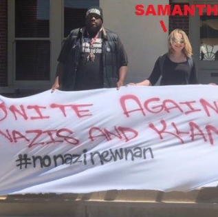 https://archive.ph/ci5cU Samantha Binion of Newnan, GA is a member or supporter of Atlanta Antifascists. Initially, we thought she might just be a local who was opposed to the NSM, but it turns out that she was involved with Atlanta Antifa long before the Newnan rally.