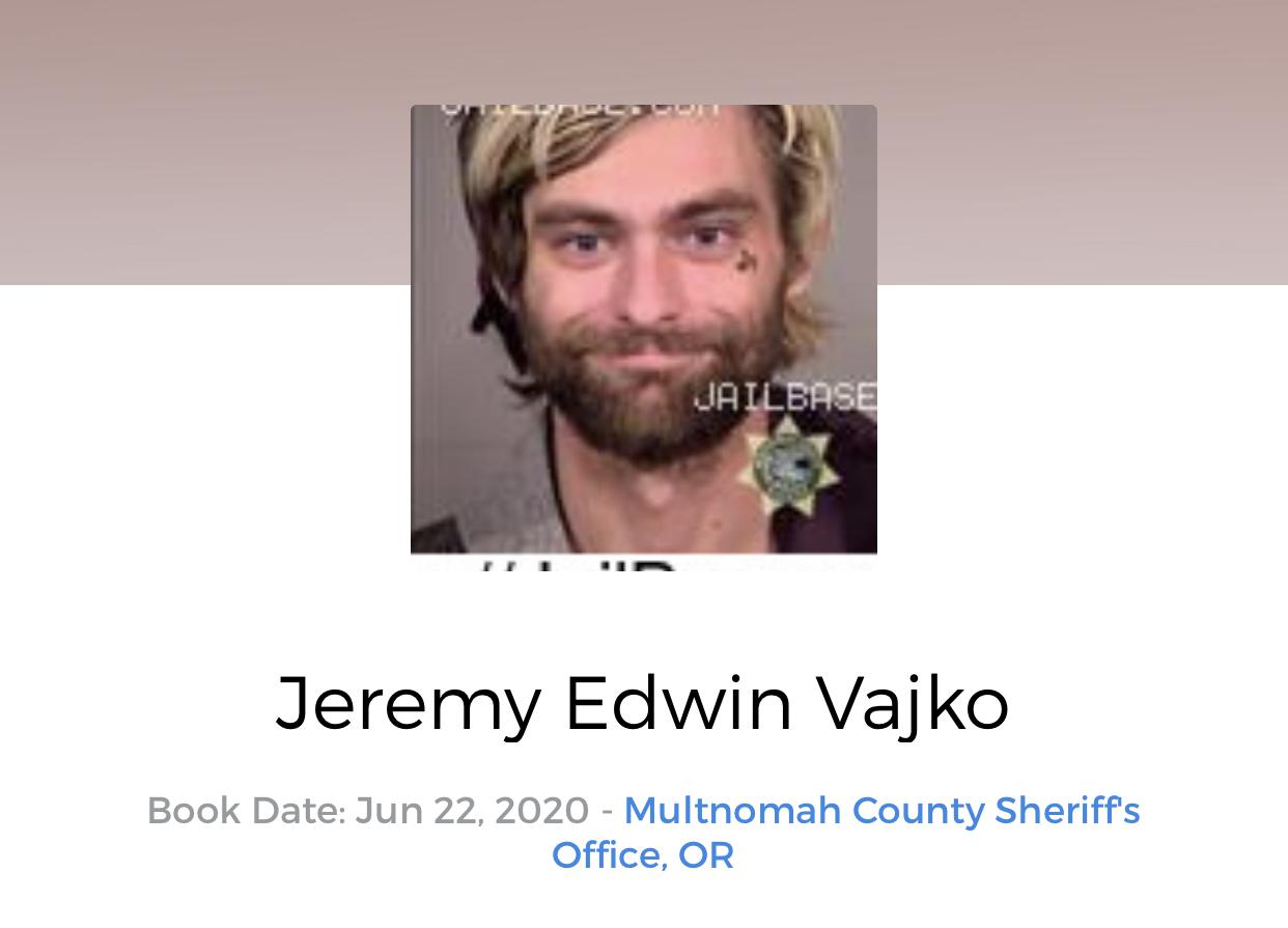 https://www.portlandoregon.gov/police/news/read.cfm?id=250999 https://twitter.com/MrAndyNgo/status/1284462162732351489 Jeremy Edwin Vajko, 27, of Washington state, was arrested again at the violent antifa protest in downtown Portland. He is frequently seen driving around in a "BLM" van & giving resupplies/aid to the rioters. http://archive.vn/g5obh