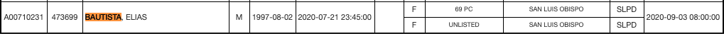 https://keyt.com/news/crime/2020/07/24/slo-county-da-withholding-opinions-on-protestors-arrests-until-after-investigations-are-complete/ Police said, while they were arresting Arata, an officer was assaulted by another protestor, later identified as Elias Bautista. Bautista was immediately arrested by SLO police.
