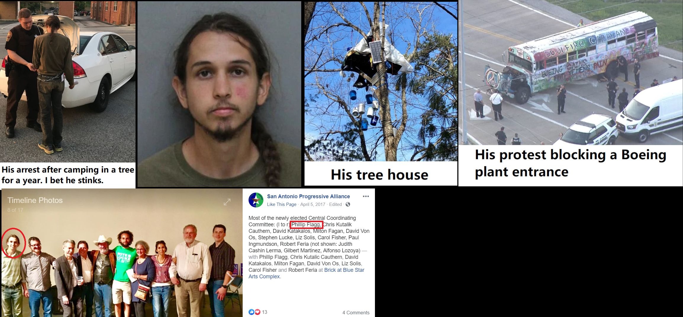 https://twitter.com/AntifaWatch2/status/1526961293843914752 https://twitter.com/AntifaWatch2/status/1526707172578578435 https://www.wsbtv.com/news/local/atlanta/video-shows-molotov-cocktail-being-thrown-officers-protesters-arrested-new-training-facilit/F52ZIV5RTVHQHHBYX3YUZF6SMA/ Arrests on 5/17 in #Atlanta at an #Antifa connected 'protest' where molotovs were thrown at police Flagg (Fagg?) is a M>F tranny who was previously arrested in 2019 in Virginia for camping in a tree for a year to block the Mountain Valley Pipeline. Prior to that, he used a school bus to block the entrance to a Boeing plant in St. Louis to "show solidarity with the people of Yemen". He may live in Massachusetts now but he's from Texas. Some sources say Austin, others San Antonio. He was a member of the San Antonio Progressive Alliance which is affiliated with the Democratic Socialists of America. https://archive.ph/N0iE4, https://archive.ph/H1ica, https://archive.ph/ITHV8