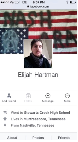 https://narrative-collapse.com/narrative-collapse-378/ https://archive.is/r3IMw https://thefifthcolumnnews.com/2016/07/interview-with-elijah-hartman/ Nashville ARA - charged with rape.
