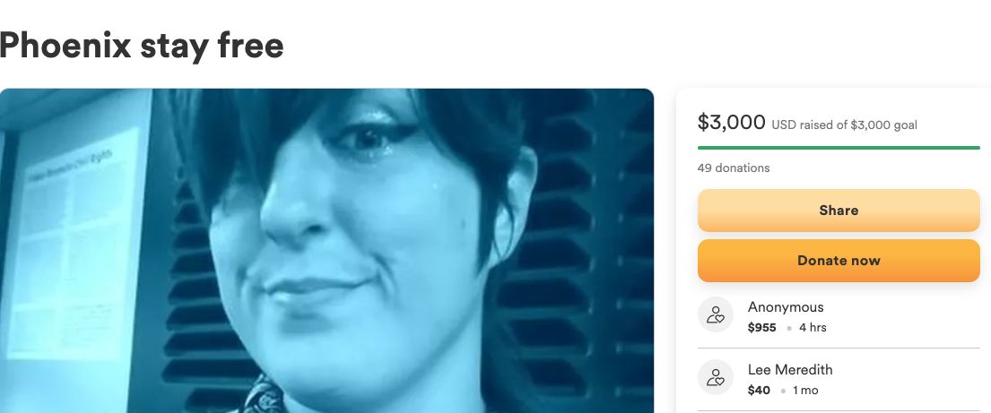 Donated to violent extremist Phoebe Anne Loomis's gofundme for criminal charges. Wears antifa clothing herself.