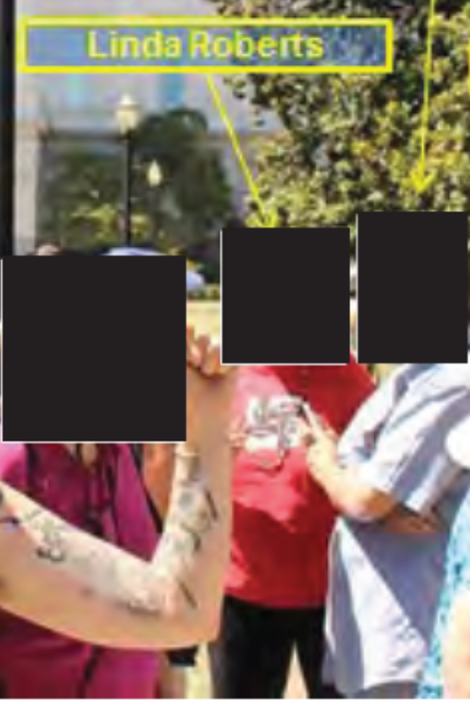 According to a 2016 criminal investigation by the California Highway Patrol recently obtained by the William McKinley Institute, Linda Ellen Roberts "arrived at the California State Capitol to support a planned action to deny the Traditionalist Worker Party (TWP) from assembling and speaking at their event." Birthdate: 8/10/1951 https://wmkinstitute.com/chps-2000-page-report-on-2016-sacramento-capital-anti-white-antifa-terrorist-attack/ https://wmkinstitute.com/chp-helicopter-footage-of-the-2016-premeditated-anti-white-attack-in-sacramento/ https://wmkinstitute.com/the-torch-antifa-network-the-anarcho-terrorist-syndicate/ https://archive.is/mYEtC