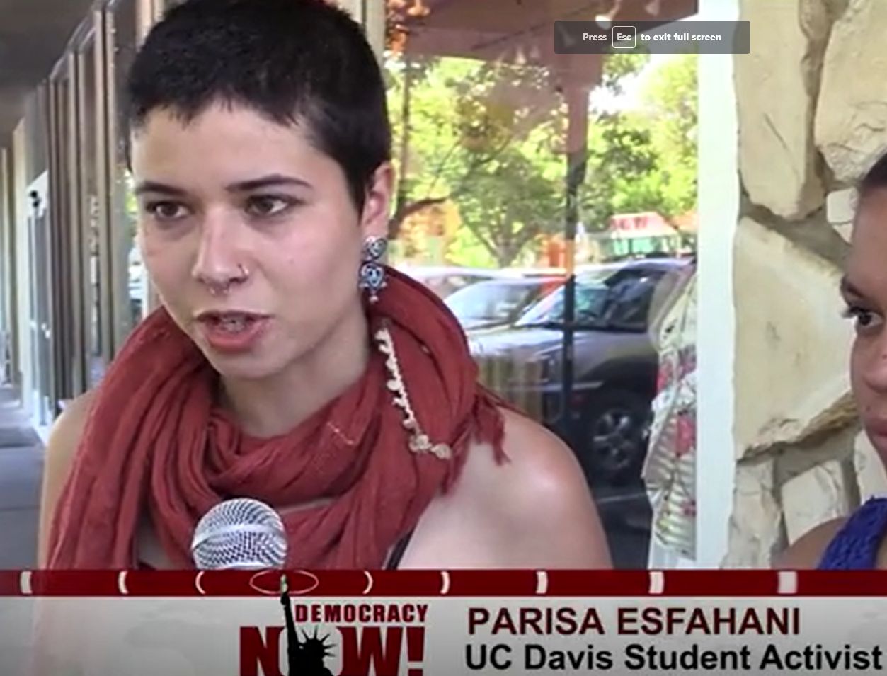 According to a 2016 criminal investigation by the California Highway Patrol recently obtained by the William McKinley Institute, Parisa Jean Esfahani "arrived at the California State Capitol to support a planned action to deny the Traditionalist Worker Party (TWP) from assembling and speaking at their event." According to the report, "Esfahani indicated her affiliation with Brown Berets of OC, Resilience OC, Solidarity (A Socialists, Feminist, Anti-Racist Organization), Black Lives Matter, and various other political groups." Esfahani was punched in the face after she attacked several people with a club. Birthdate: 7/9/1994 https://wmkinstitute.com/chps-2000-page-report-on-2016-sacramento-capital-anti-white-antifa-terrorist-attack/ https://wmkinstitute.com/chp-helicopter-footage-of-the-2016-premeditated-anti-white-attack-in-sacramento/ https://wmkinstitute.com/the-torch-antifa-network-the-anarcho-terrorist-syndicate/ https://archive.is/Lg88C https://archive.is/JPGo0 https://archive.is/W9Exg https://archive.is/JPGo0 https://archive.is/B2SDn https://twitter.com/szendehnam/status/747139712066871297 She was a student at UC-Davis at the time of the riot. In 2016 she participated in a 36 day sit-in that attempted to cancel the school's chancellor. Esfahani majored in gender studies and Middle East and South Asian studies. https://archive.ph/3qOW7