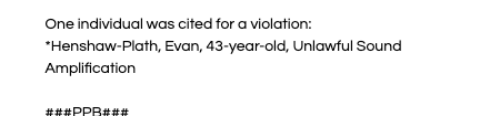 https://www.portlandoregon.gov/police/news/read.cfm?id=271260 *Henshaw-Plath, Evan, 43-year-old, Unlawful Sound Amplification
