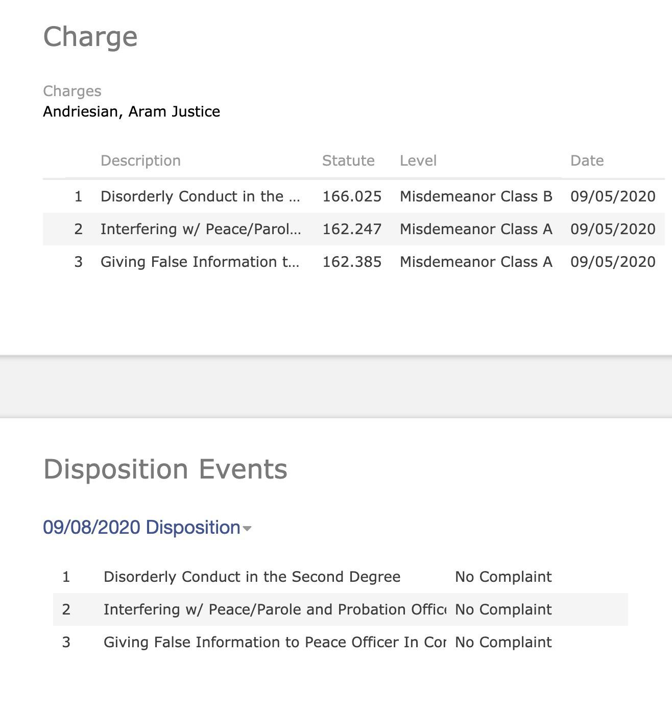 https://twitter.com/MrAndyNgo/status/1307561204668231680 Aram Justice Andriesian, 27, was arrested at the violent #antifa riot on 4–5 Sept. in Portland. He was charged w/disorderly conduct, giving false information to police & more. All his charges were dropped by @MultCoDA @DAMikeSchmidt. #PortlandRiots #BLM