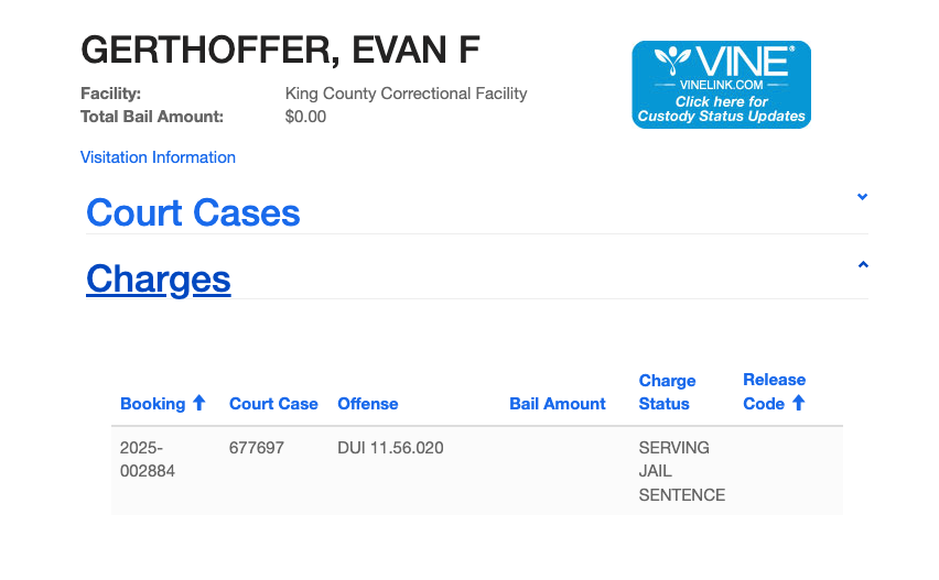 https://twitter.com/SeattlePD/status/1323872521607815169 Charge(s): OBSTRUCTION Got jail time for a DUI sometime in 2025