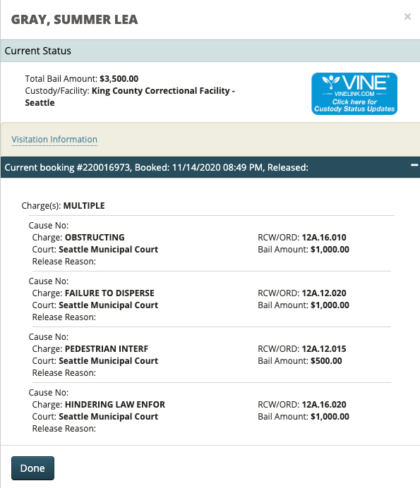 Failure to disperse, Pedestrian interference, obstruction, and hindering law enforcement.