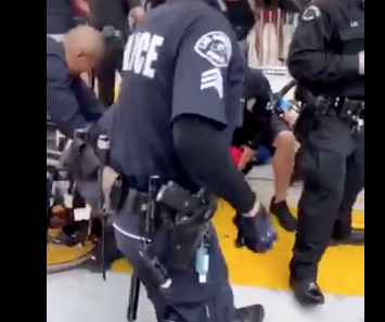 https://ktla.com/news/local-news/lapd-to-release-bodycam-video-amid-outcry-over-violent-clash-with-protesters-including-man-in-wheelchair/ Mario Chacon, a 30-year-old Glendora man, was also arrested after being swept up in the scuffle. LAPD alleges he tried to grab an officer’s baton when “another use of force occurred.” Chacon was arrested after receiving medical treatment and is now facing a charge of battery on a peace officer. His arraignment has been rescheduled for Oct. 16, the DA’s office said.