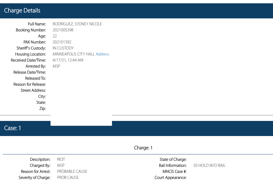Arrested during the Brooklyn Center (Minneapolis) Minnesota Riots between 4.12 and 4.17