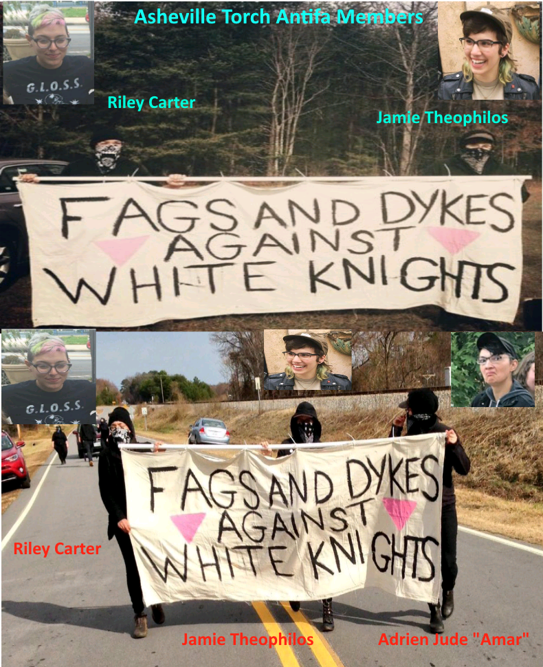A core member of Asheville Anti Racism and former Firestorm employee. Her alias is Amar and is called that by everyone in town but we're not 100% sure of her real name. The Albanian Armed forces has her as Adrien Jude but we feel that needs another look. She was living off Shelburne Dr. in West Asheville until recently and working at a local restaurant called Bim Beri Bom. She used to drive a 4-door black Scion xB hatchback with a 103.3 radio sticker on the back bumper but believe it broke down. She has the Antifa three arrows tattooed wrapping around her upper left arm. Also was a student at UNC Asheville. Age is somewhere between 28-32. We will find everything and update you. We always do. An article with a photo of her from 2012. https://mountainx.com/news/community-news/photos_occupy_ashevilles_tyrannicide_day_march/