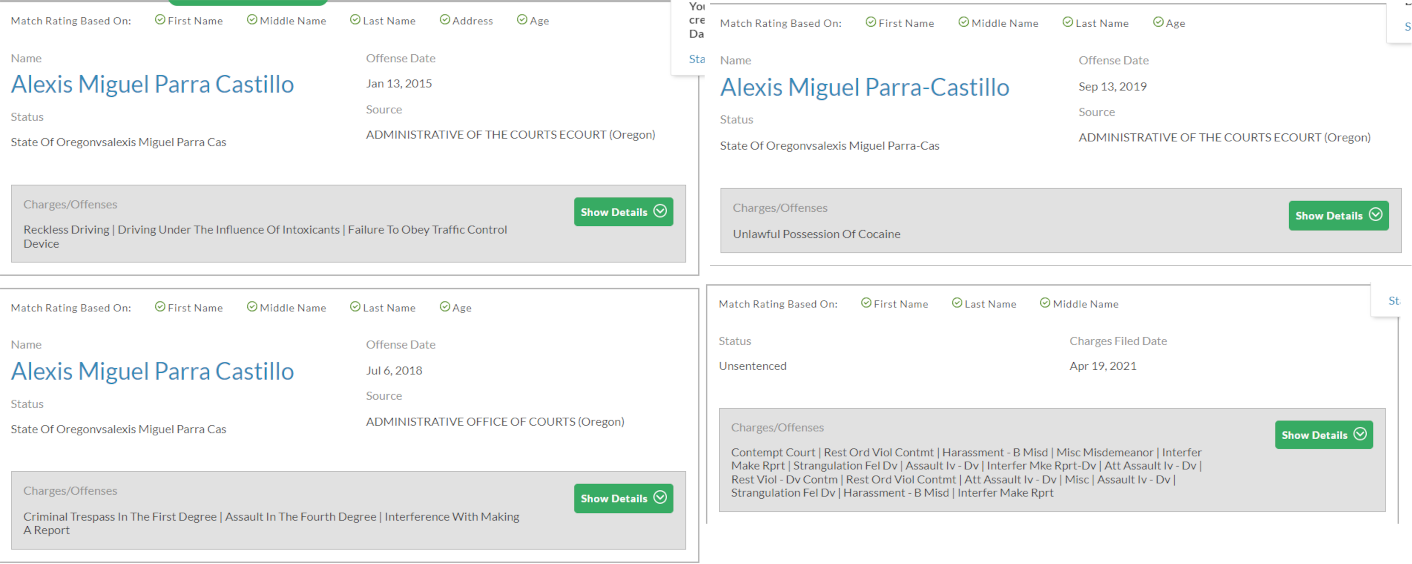 https://twitter.com/mrandyngo/status/1266783301949206528?lang=en Alexis Parra-Castillo, 25 Charges: felony riot #PortlandMugshots #Antifa #BlackLivesMatter http://archive.vn/JH2Vw Full name: Alexis Miguel Parra-Castillo (DOB: 07/08/94). As far as we can tell, it's a guy despite his girly name. This fine young Antifa had priors and subsequents for theft x3, criminal trespassing, minor in possession of alcohol, unlawful possession of cocaine, interference with making a report, assault, content of court and strangulation. He lives in northeast Portland with his extended family.