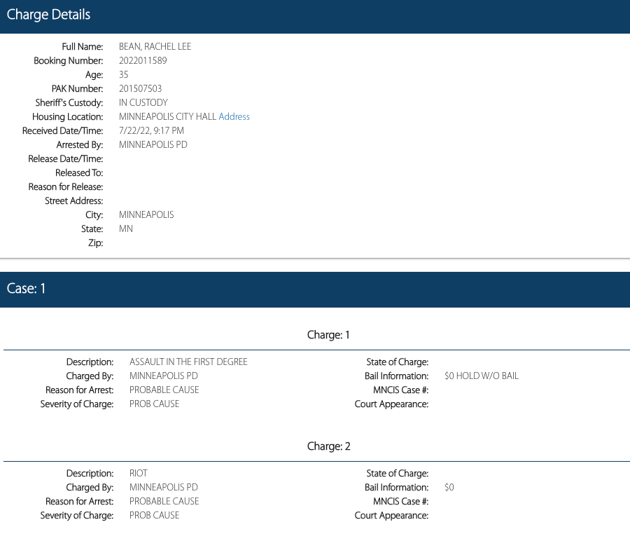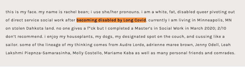 Arrested on 9/22/22 during dave chapelle antifa protest for riot and assault 1. She describes herself as a white fat disabled queer who became disabled because of long covid https://twitter.com/DEMOCRACYFAN129/status/1550682151196282880