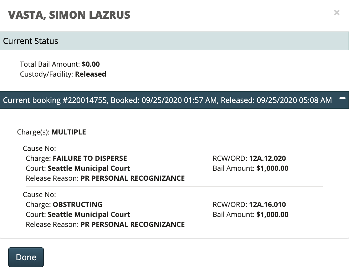 9/25 Seattle Charge: OBSTRUCTING Charge: FAILURE TO DISPERSE