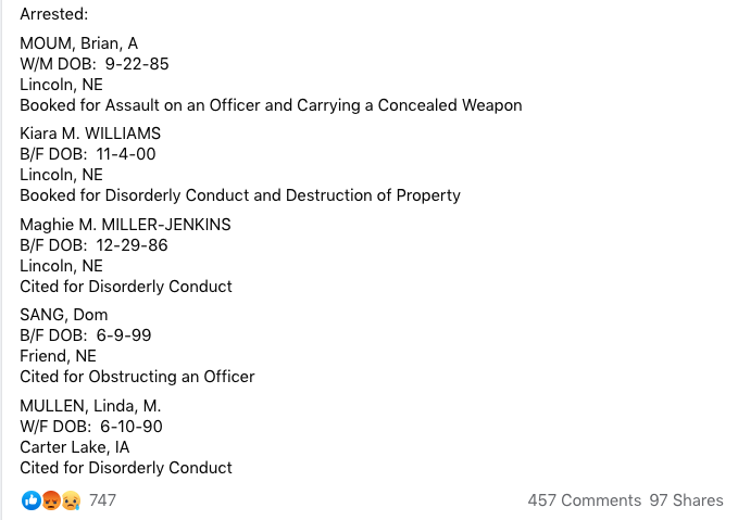 https://www.facebook.com/OmahaPoliceDepartment/posts/10158761403714096 Maghie M. MILLER-JENKINS B/F DOB: 12-29-86 Lincoln, NE Cited for Disorderly Conduct