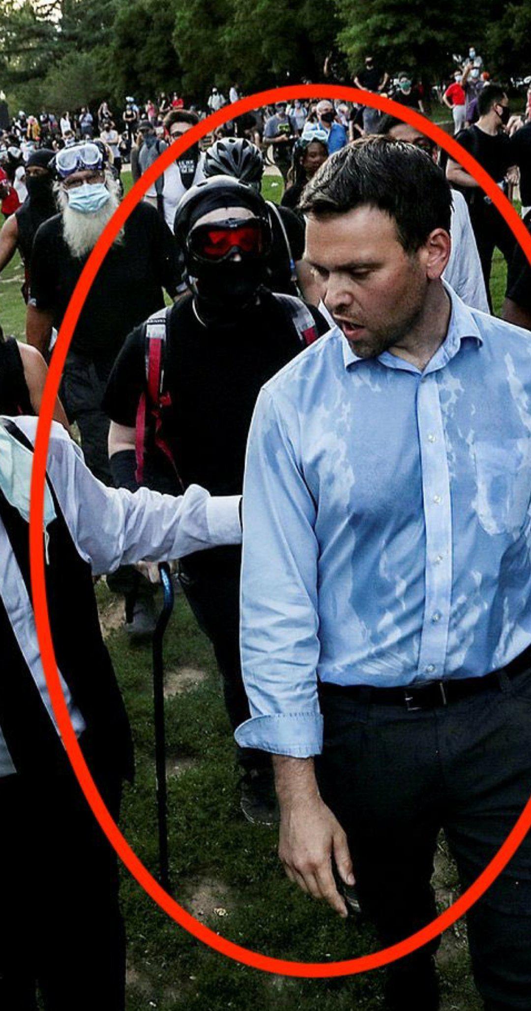 https://twitter.com/KreuzZane/status/1276848452798996480 On the right (glasses) associated with Jason Charter, involved with stalking & harassing Jack Posobiec. Also clear pictures of involvement in Charlottesville violence.
