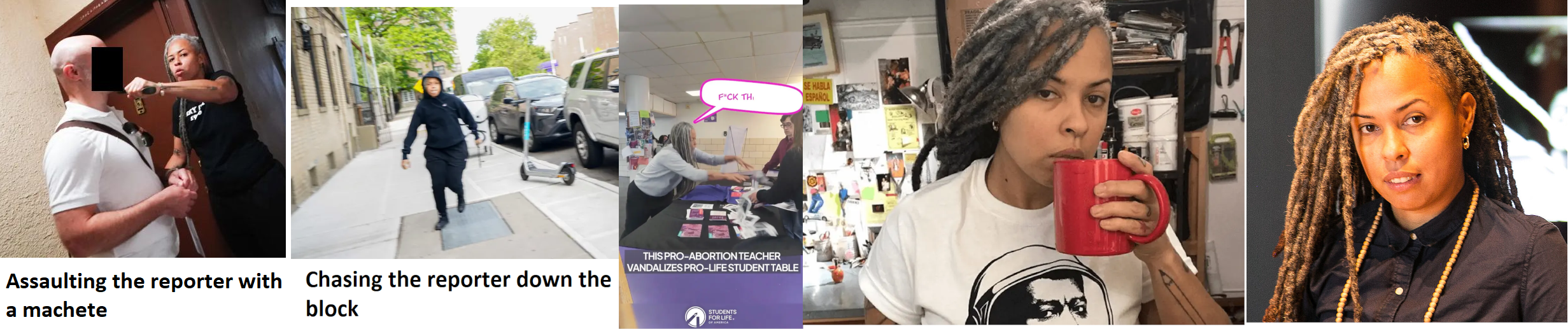 Shellyne F. Rodriguez (born Aug. '77) is a former adjunct art professor at Hunter College who cursed out a group of students who were hosting a pro-life information table at the school in May 2023. She also vandalized the student's table. A NY Post reporter knocked on her door a few days later and Rodriguez held a machete to the reporter's neck. The reporter left the apartment building, but she followed him outside shouting, "If I see you on this block one more f**king time, I'm gonna…" and "Get the f**k off the block, get the f**k outta here, yo!". Hunter College opened an investigation into the professor's actions and then fired her after the machete attack. It's unknown if the NYPD is investigating her assault on the Post reporter but her crime would seem to be at least aggravated assault. Rodriguez claimed in an article to be a black Marxist. She had a 1998 prior for hindering apprehension but no other criminal charges. She did have a state tax lien. Rodriguez lives in a dumpy apartment building in the Bronx with an elderly man. https://archive.ph/Dqka0 https://archive.ph/znYOW https://twitter.com/i/status/1660695849209348374 (Attack on students) https://web.archive.org/web/20230130140601/https://asapjournal.com/two-readings-on-mistaken-identity-shellyne-rodriguez/ https://www.shellynerodriguez.com/new-page-1 https://en.wikipedia.org/wiki/Shellyne_Rodriguez