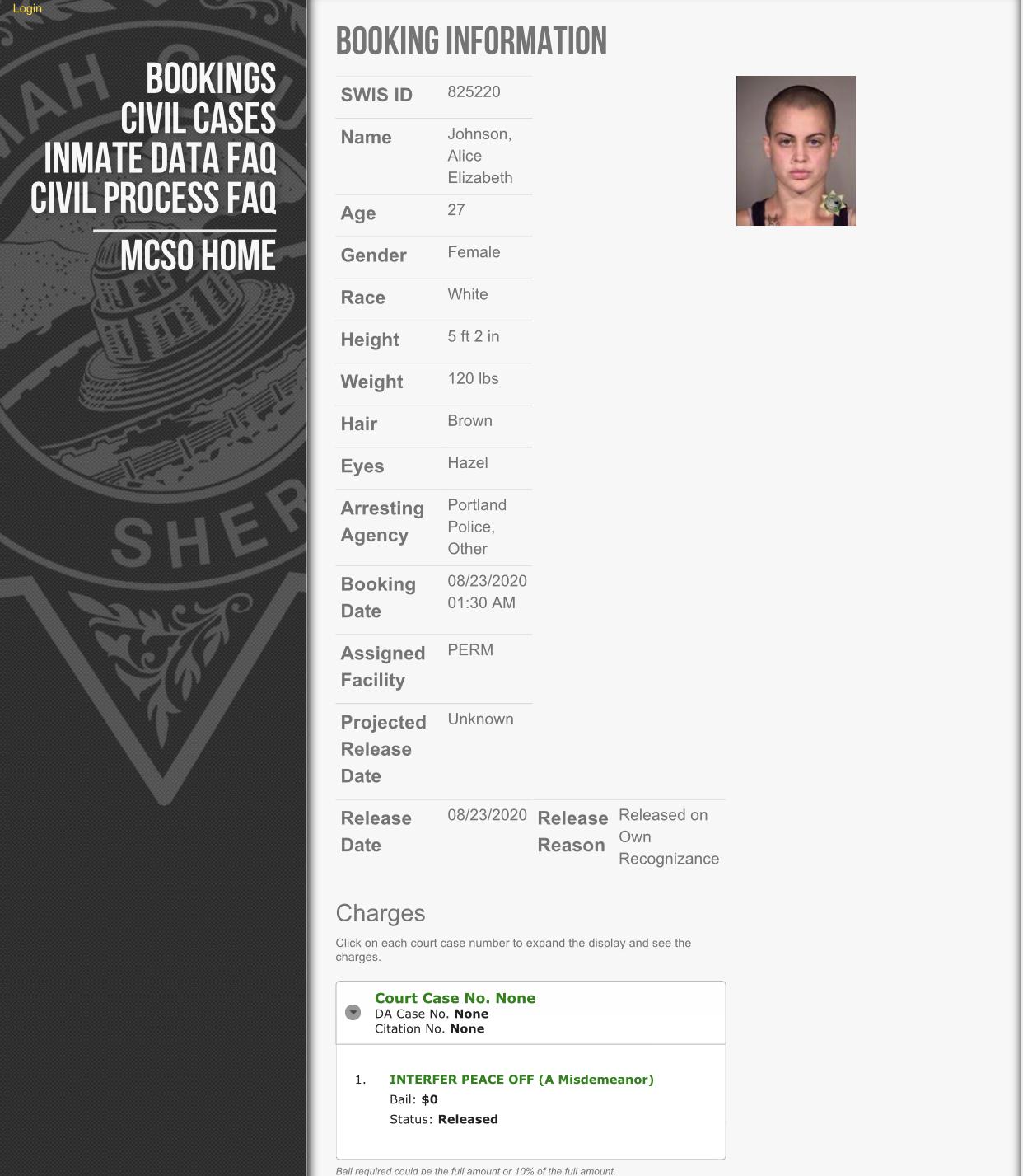https://www.portlandoregon.gov/police/news/read.cfm?id=261128 Johnson, Alice, 27, of Portland, Interfering with a Peace Officer Full name: Alice Elizabeth Johnson, DOB: 09/08/92, AKA "Alice Phallus". Her charge was of course dismissed. Johnson used to groom kids as a life skills coach at a non-profit that serves youth. She works as a cocktail waitress or possibly go-go dancer at the live music venue Dante's Inferno in Portland. The multi-talented Mx. Johnson is also part of a performance art dynamic dyke duo with a 300-pound dyke or maybe tranny as a partner. Johnson graduated with honors from Colorado State and may be from Colorado originally. She lives in NE Portland. https://archive.ph/ApOAb https://archive.ph/7vvxJ https://www.facebook.com/ladyphallus/