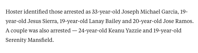 Sgt. Ben Hoster announced Friday the arrests of six people on charges ranging from burglary to trafficking stolen property. The total number of suspects arrested in the May 30 looting of Scottsdale Fashion Square is now 53. Hoster identified those arrested as 33-year-old Joseph Michael Garcia, 19-year-old Jesus Sierra, 19-year-old Lanay Bailey and 20-year-old Jose Ramos. A couple was also arrested — 24-year-old Keanu Yazzie and 19-year-old Serenity Mansfield.