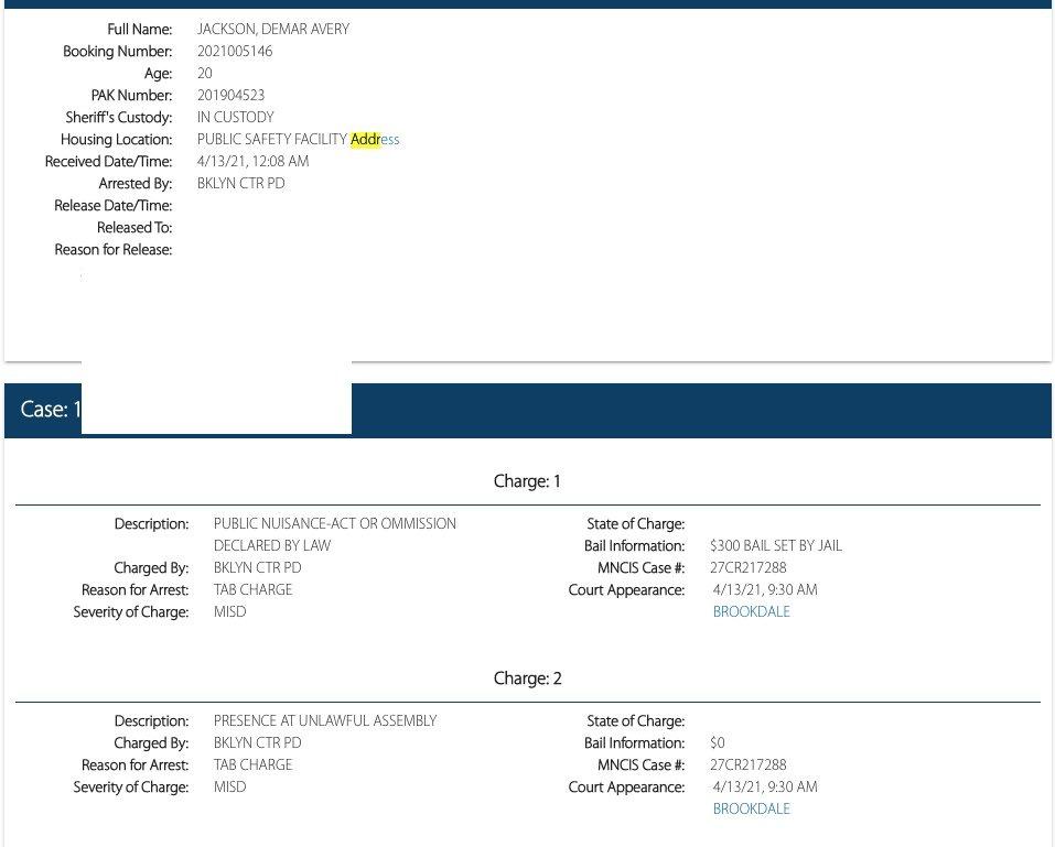 Brooklyn Center 4/12 riot Demar Avery Jackson was arrested. Held on 300$ bail. Jackson was arrested as part of a crime ring that focused on robbing intoxicated people back in August of 2020. Video : https://twitter.com/AntifaWatch2/status/1382002294359785474