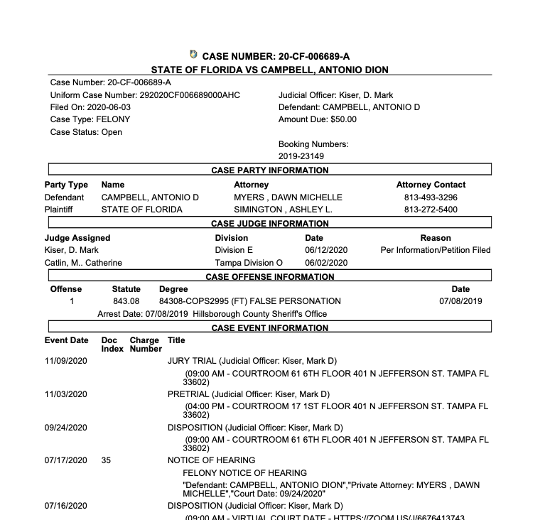 (FT) FALSE PERSONATION BROOKS, VINTWAN LE'DARIO* 9/1/90 He removed a Confederate flag from a vehicle and then attempted to burn it at a George Floyd protest in Plant City. His initial charges appear to have been reduced. He works in fisheries management.