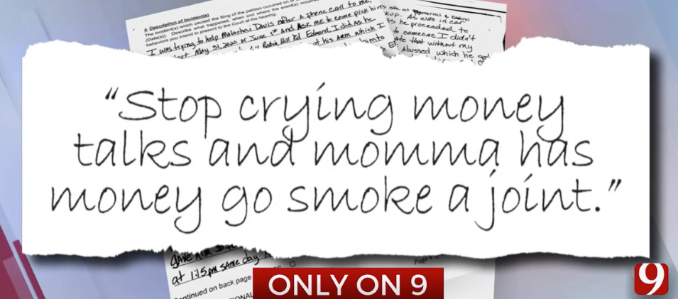 https://www.news9.com/story/5eeae290fd9cfd1116a2bfd4/suspect-identified-wanted-for-destruction--inciting-riot-investigators-say https://www.documentcloud.org/documents/6988651-Ruffin-Ortiz-Davis-Hayhurst-Dixon-Ok-State-Court.html Malachai Davis, now wanted on a string of charges including terrorism is seen in the video, in the stripe shirt, punching out a window before flashing brass knuckles and a bloody hand at the camera.