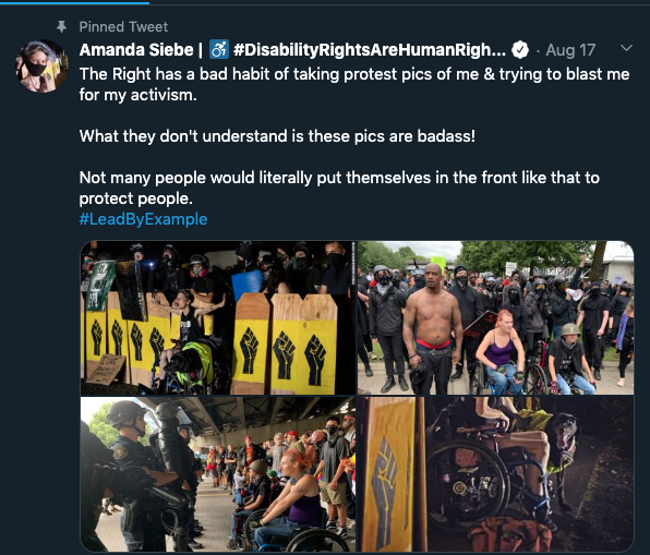 https://twitter.com/SiebeforORD1/status/1295306297118605313 Amanda Nicole Siebe (DOB: 11/29/84) ran for a U.S. House seat in 2020 and came in a distant third place. She admits to her presence at multiple Antifa riots in Portland. She's known to allow Antifa members from other states to stay at her house. She claims to be a disability rights activist and says she has Reflex Sympathetic Dystrophy caused by an accident on her job as an EMT. She's wheelchair bound and uses a Black Lab mix dog as her service animal. She attended Western Oregon University where she was awarded the Saul Alinsky Community Organizing Award. In her spare time she's volunteered for both the boy and girl Scouts, no doubt indoctrinating them to become young Antifa. She's an associate of Josh Corbin (https://antifawatch.net/ViewReport/8ea10247) and Paul Lister (https://antifawatch.net/ViewReport/1ec78084). Siebe appears to live in the Salem suburb of Independence, Oregon. https://archive.vn/CDp7I, https://archive.vn/cSVbN, https://archive.vn/e42gC, https://archive.vn/yjP5h Participated in the pearl district antifa riot on Friday, March 12, 2021 https://www.portlandoregon.gov/police/news/read.cfm?id=301580