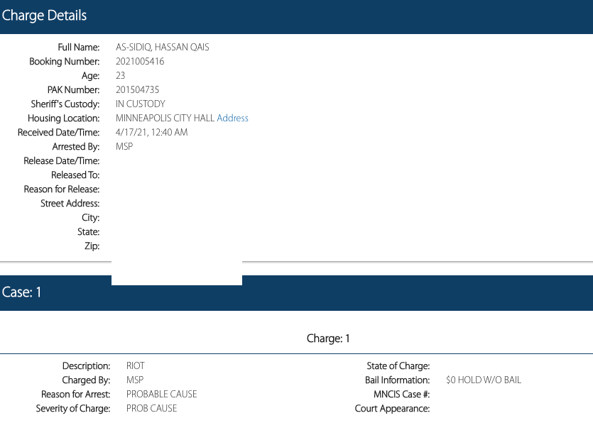 Arrested during the Brooklyn Center (Minneapolis) Minnesota Riots between 4.12 and 4.17