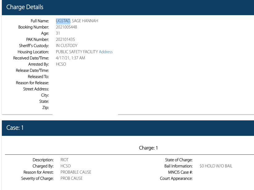 Arrested during the Brooklyn Center (Minneapolis) Minnesota Riots between 4.12 and 4.17