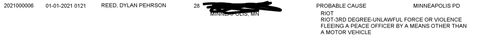 Arrested as part of the 2021 New Years Minneapolis 'jail support' riot. Pic of arrest log attached
