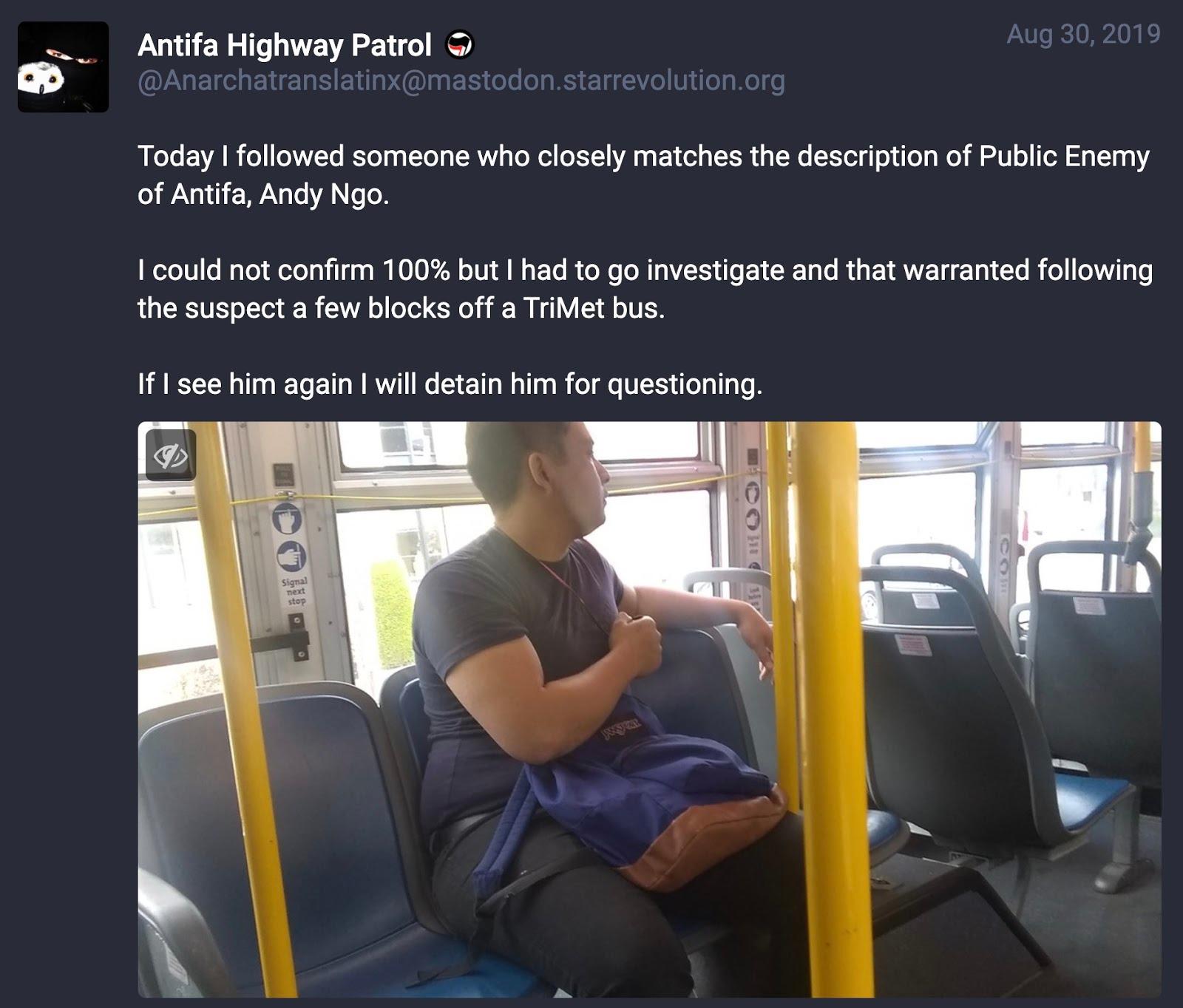 All content on AntifaWatch is user generated and therefore pursuant to 47 U.S.C. 230 (Communications Decency Act and similar applicable laws that exist worldwide) is the responsibility of the content submitter, not AntifaWatch or its moderators.