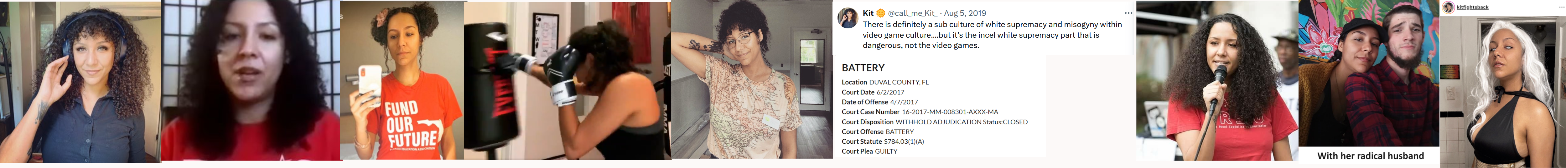 Christina "Kit" Elizabeth Kittle (Born Dec. '89) is a member of the radical Freedom Road Socialist Organization, a group allegedly funded by the Chinese Communist Party. She was one of the "Jacksonville 5" who was arrested at a 2017 anti-war rally in Jacksonville. Kittle was charged with inciting a riot, battery on a law enforcement officer and battery. She was convicted on the battery charge but the disposition of the other charges is uncertain. Kittle works as a teacher in the Jacksonville system, which is surprising given her conviction for a violent offense. She's a trained martial artist who fought off an armed robber who was trying to steal her credit card as she was buying classroom supplies for Black History month. As a committed communist, she should have just given the robber her card because he obviously needed it more than she did. She's a notable enough activist that she gave an online TED talk in 2020. Kittle is married to fellow Jacksonville radical David Schneider who was arrested at the same anti-war rally as Kittle. She lives in the Jacksonville suburb of Middleburg. https://archive.ph/5pUP7, https://archive.ph/zeXFD
