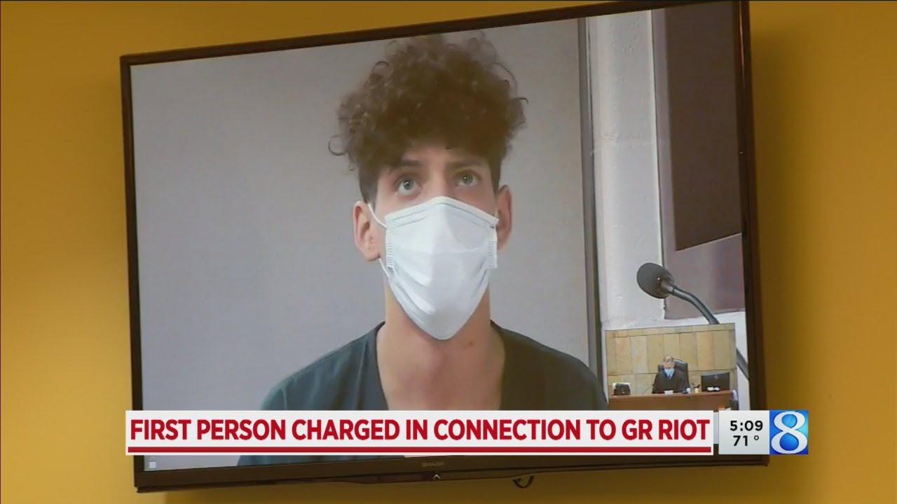 https://wwmt.com/news/local/18-year-old-gobles-man-charged-with-felony-rioting-after-violent-grand-rapids-weekend https://twitter.com/Mkrafcik/status/1267508126439419912 charged with rioting, along with larceny in a building, a four-year felony, and destruction of property