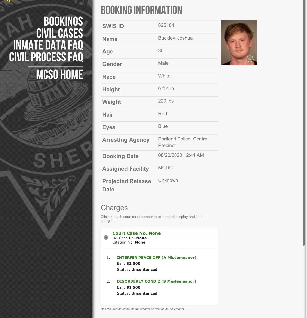 https://www.portlandoregon.gov/police/news/read.cfm?id=261115&ec=1&ch=twitter 30-year-old Joshua Buckley was arrested and charged with Interfering with a Peace Officer and Disorderly Conduct II Full name: Joshua "Josh" Daniel Buckley, DOB: 12/27/89. He has degrees in computer science and mathematics and may work as a software engineer at Amazon. He lives in the same southeast Portland house as Amber Gray (https://antifawatch.net/ViewReport/f6c1178b) and Chase Castro (https://antifawatch.net/ViewReport/afc9076c).